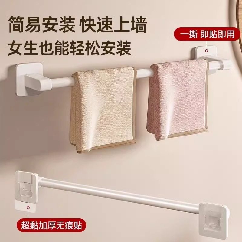 多巴胺毛巾架卫生间免打孔毛巾挂杆浴室壁挂式置物架浴巾收纳架子