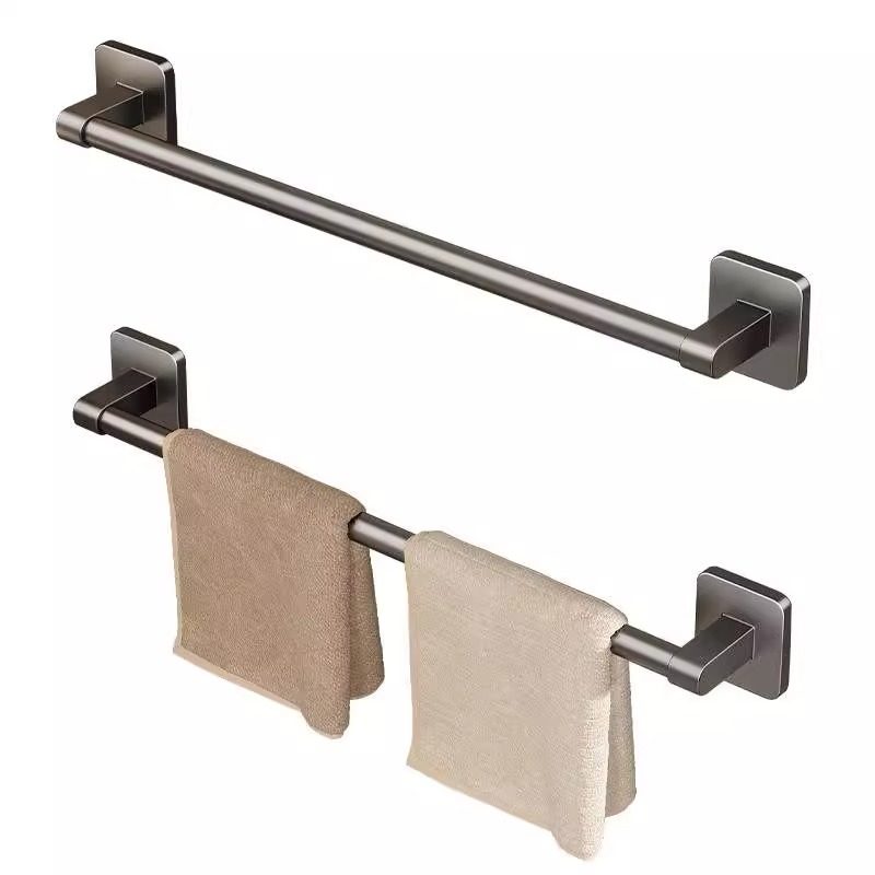 ecoco/意可可枪灰毛巾架免打孔卫生间浴室置物架浴巾架太空铝架