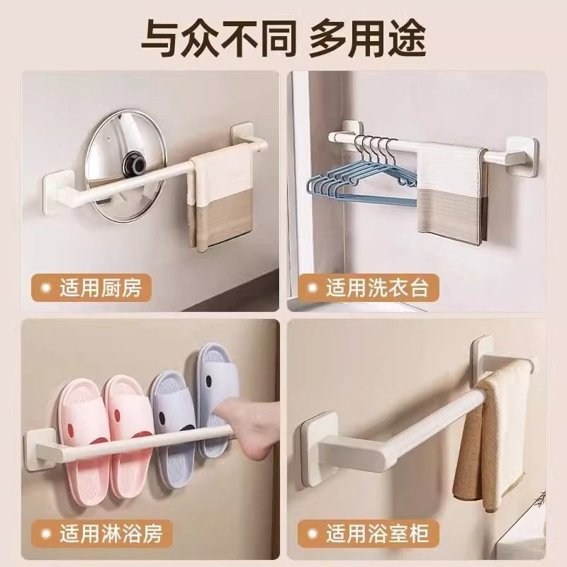 吸盘毛巾架可伸缩免打孔卫生间置物架 浴室拖鞋架浴巾杆毛巾杆