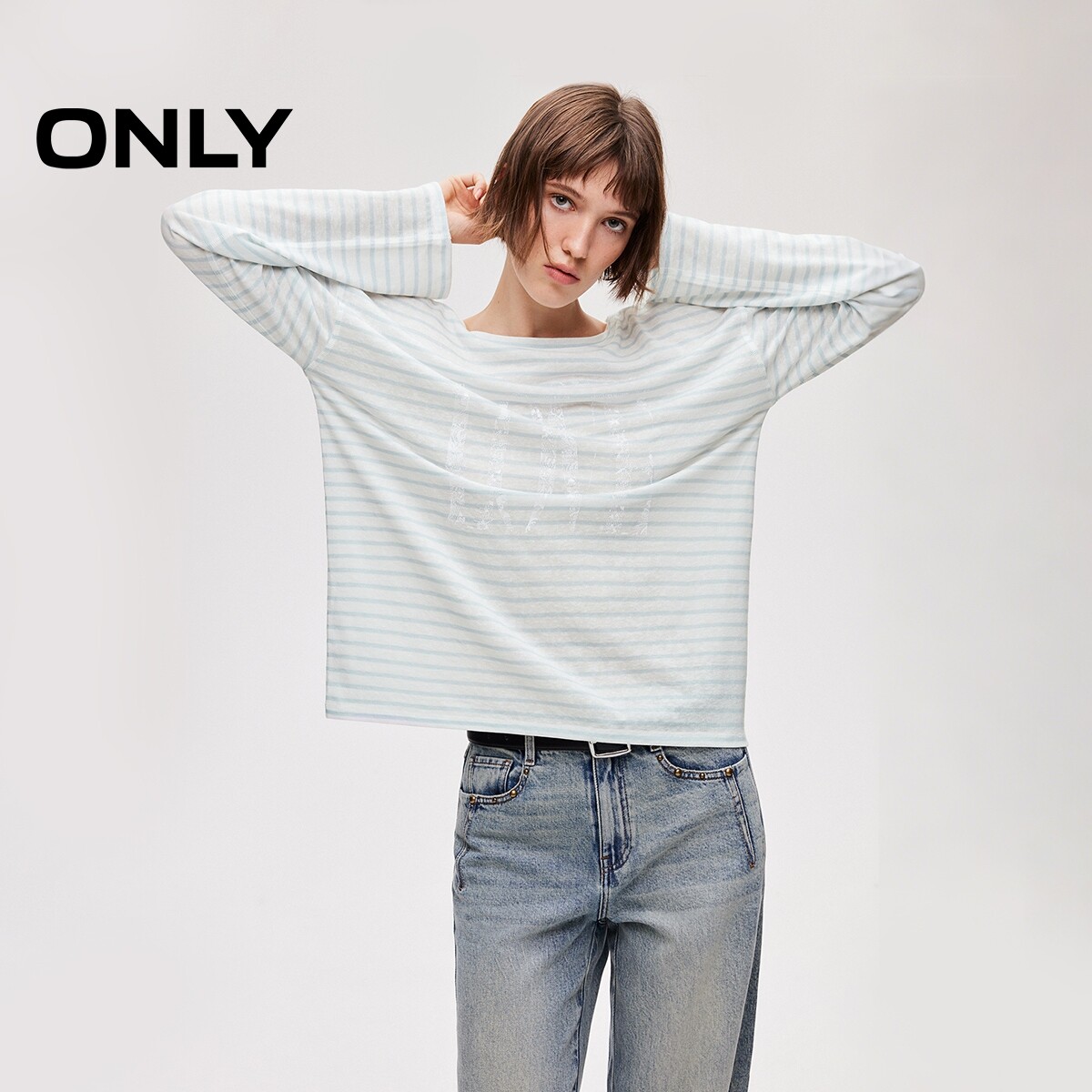 ONLY2026春季新款含莱赛尔上衣轻薄萌宠印花宽松柔软长袖T恤女
