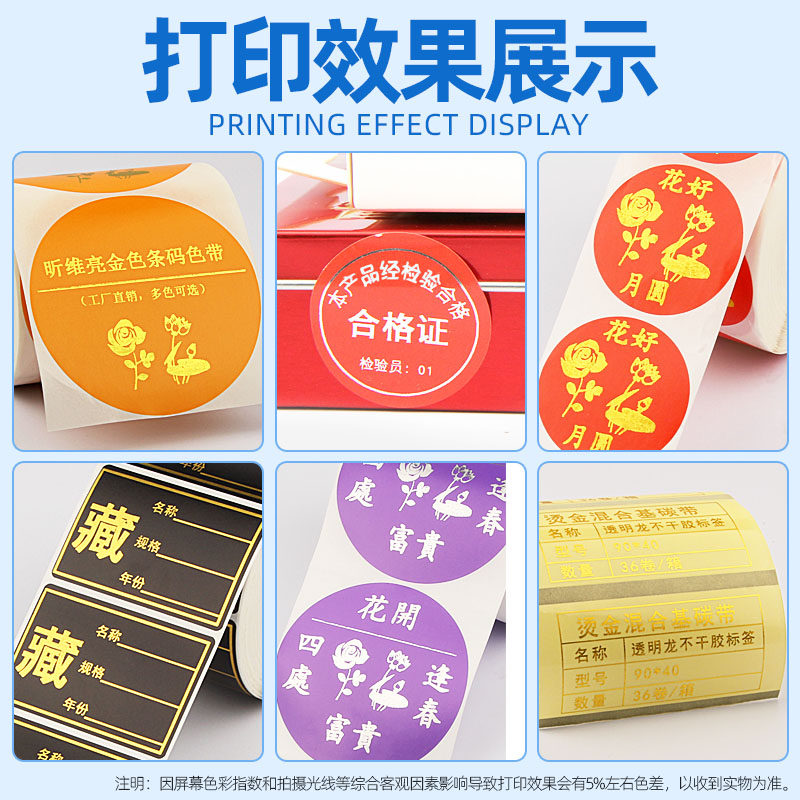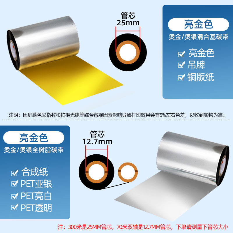 金色烫金全树脂碳带卷茶叶泡袋鲜花贺卡PE膜铜版标签贴纸亚银不干胶热转印条码打印机透明银色彩色混合基色带