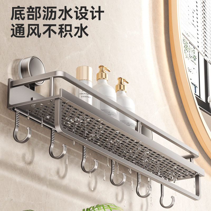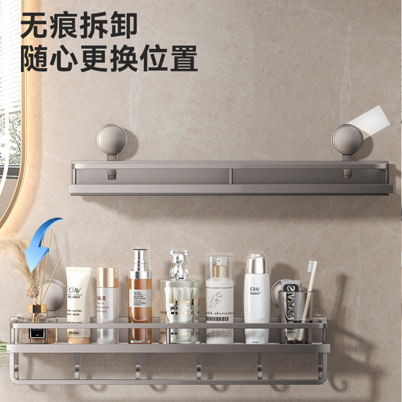 吸盘浴室置物架卫生间浴巾免打孔厕所收纳架子洗澡架双层太空铝