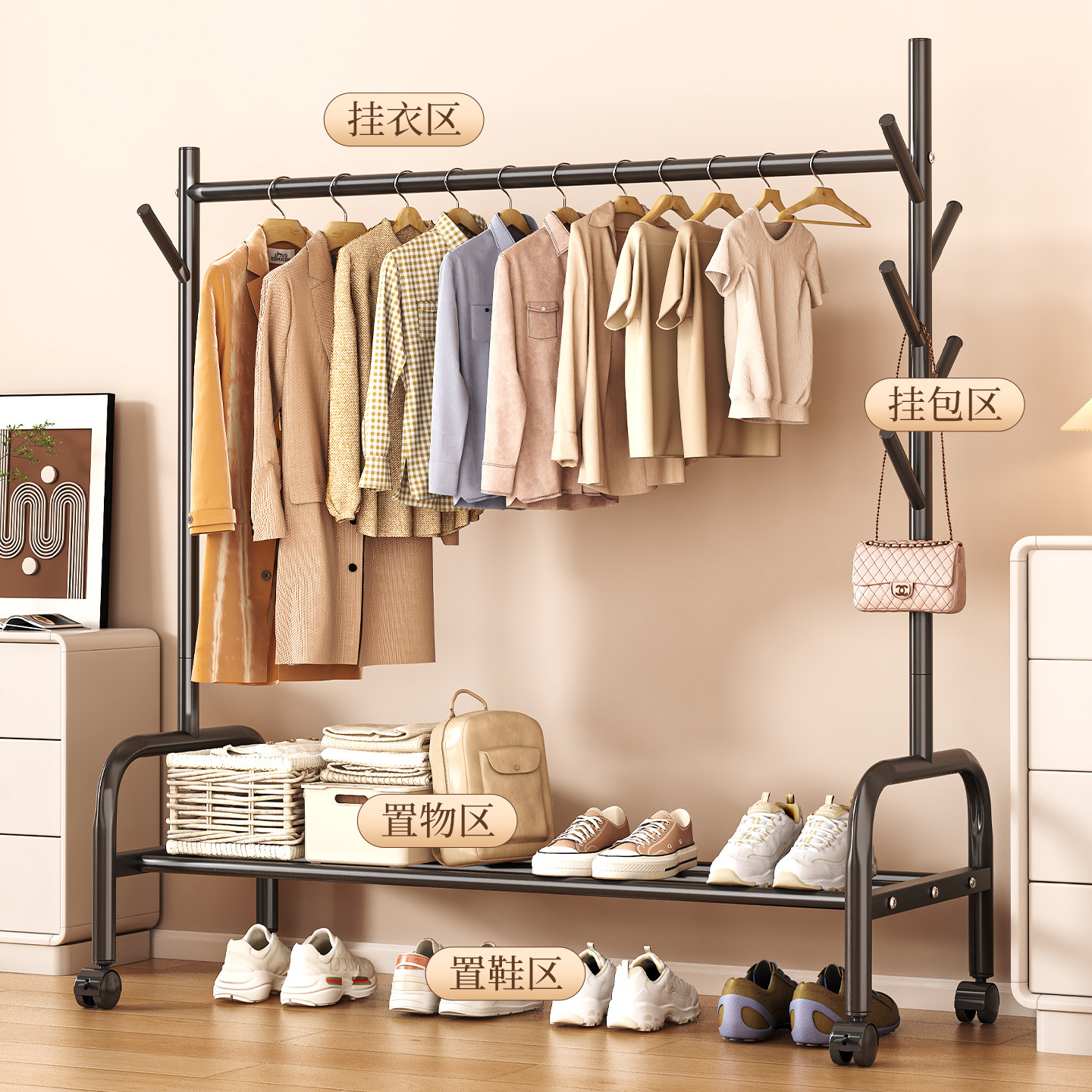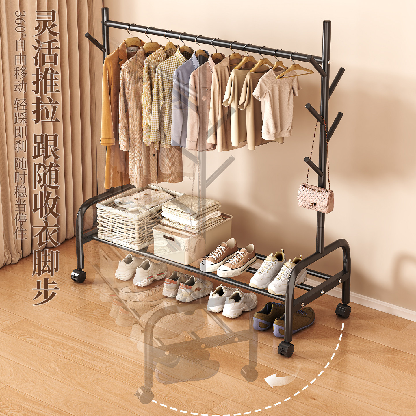 晾衣架落地家用可移动卧室凉衣架阳台挂衣服架子室内简易杆衣帽架