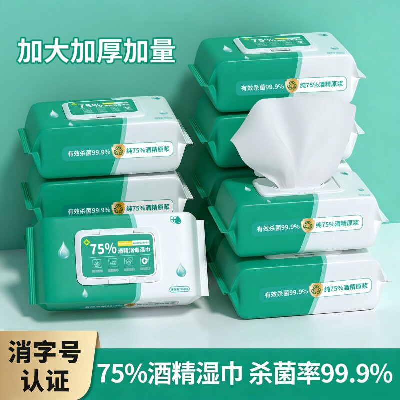 酒精湿巾75度消毒加大加厚家用清洁湿纸巾大包杀菌抗菌