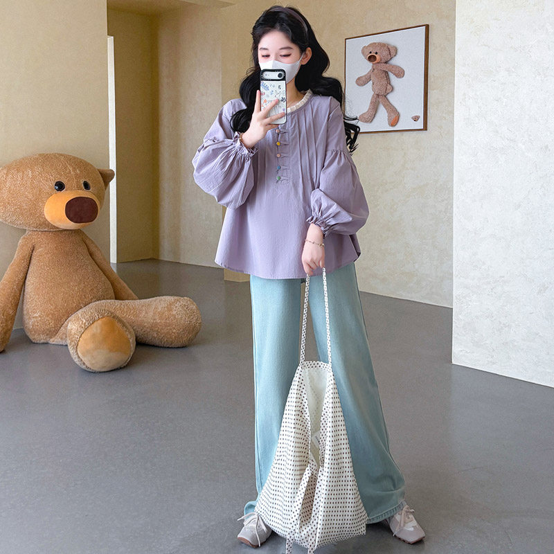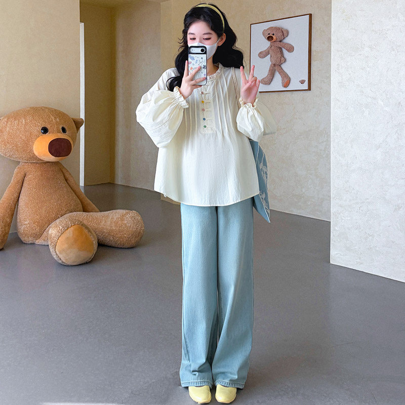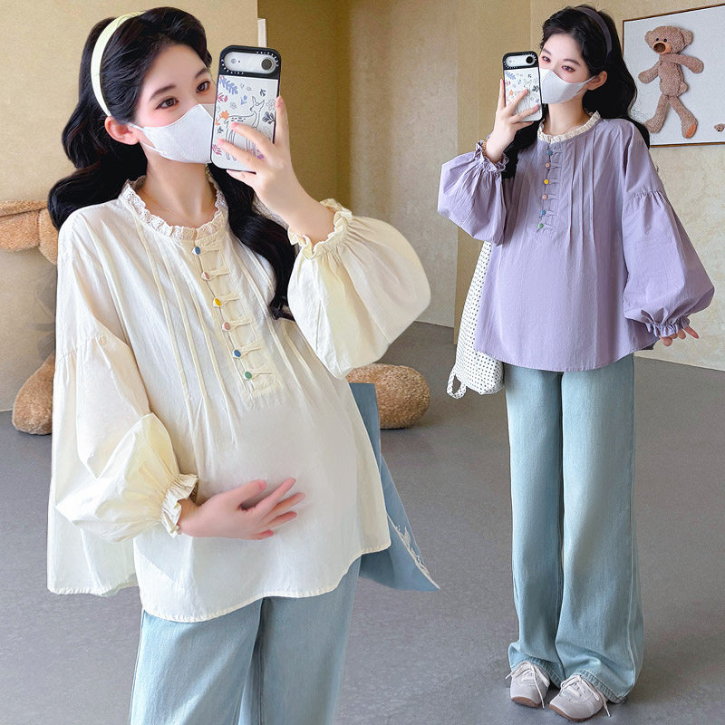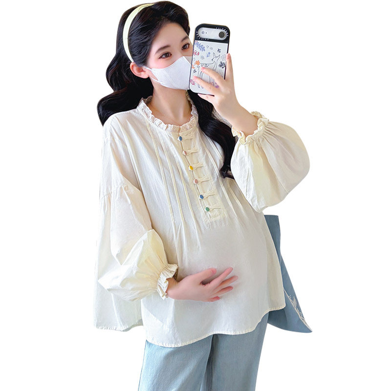 婧麒孕妇衬衫春装新款长袖宽松甜美洋气遮孕肚上衣春秋季潮妈外出