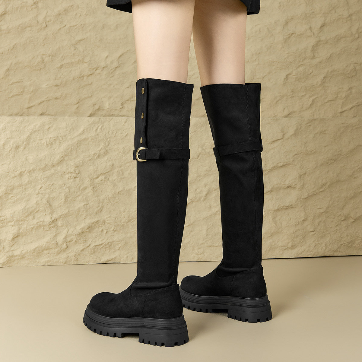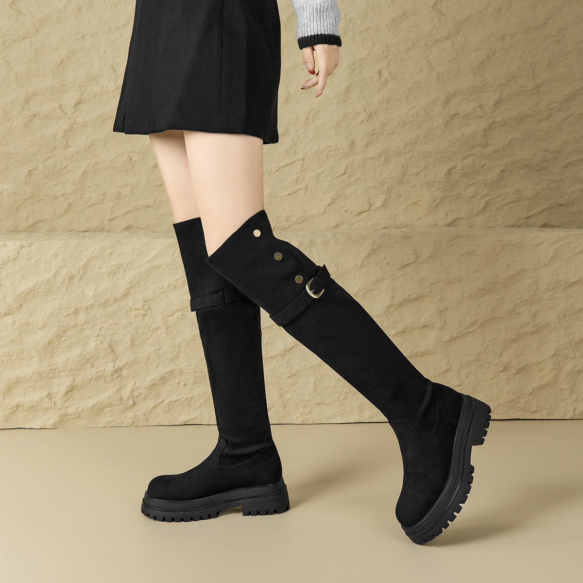 2025新款秋冬爆款厚底高筒骑士靴两穿