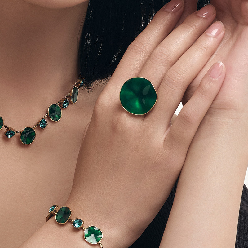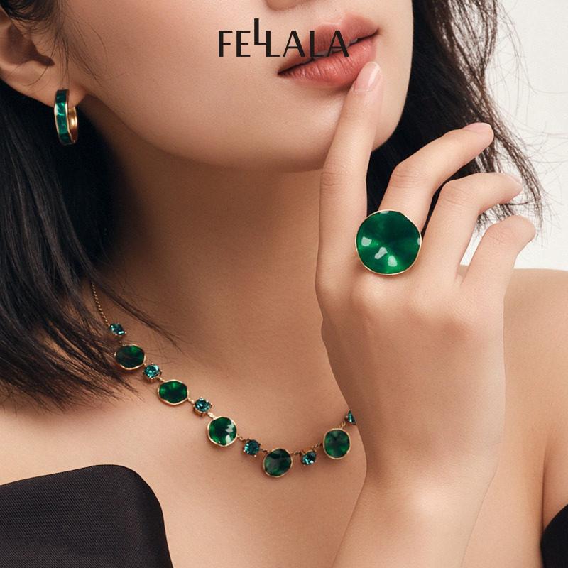 Fellala/翡拉拉「绿光」系列珐琅戒指女设计感指环