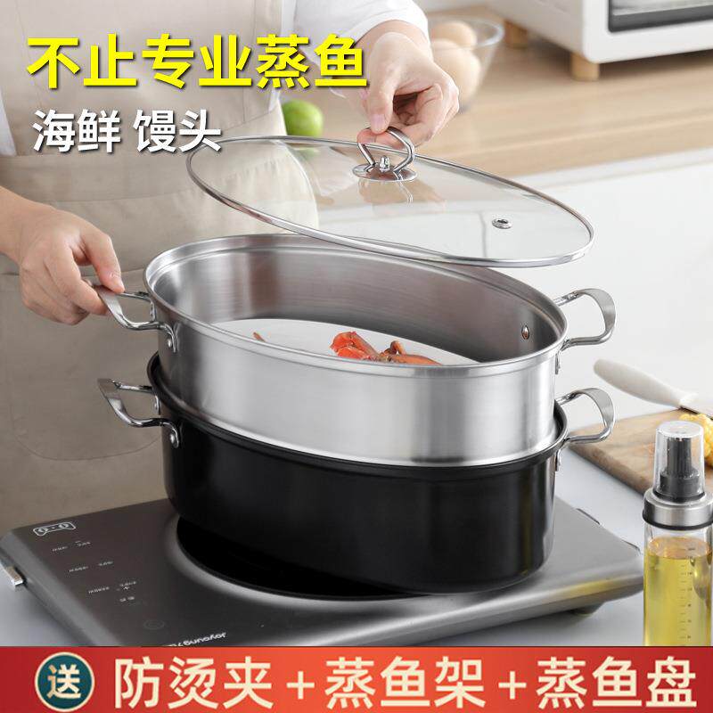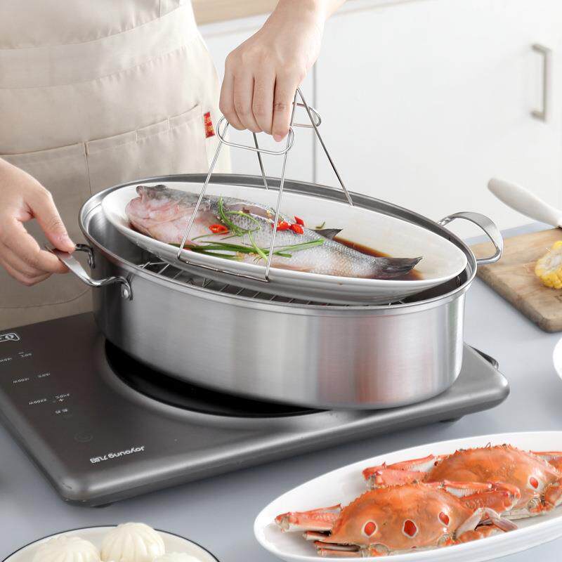 苏泊尔304不锈钢椭圆蒸鱼锅双层蒸锅 单层汤锅高档商用蒸笼礼品38