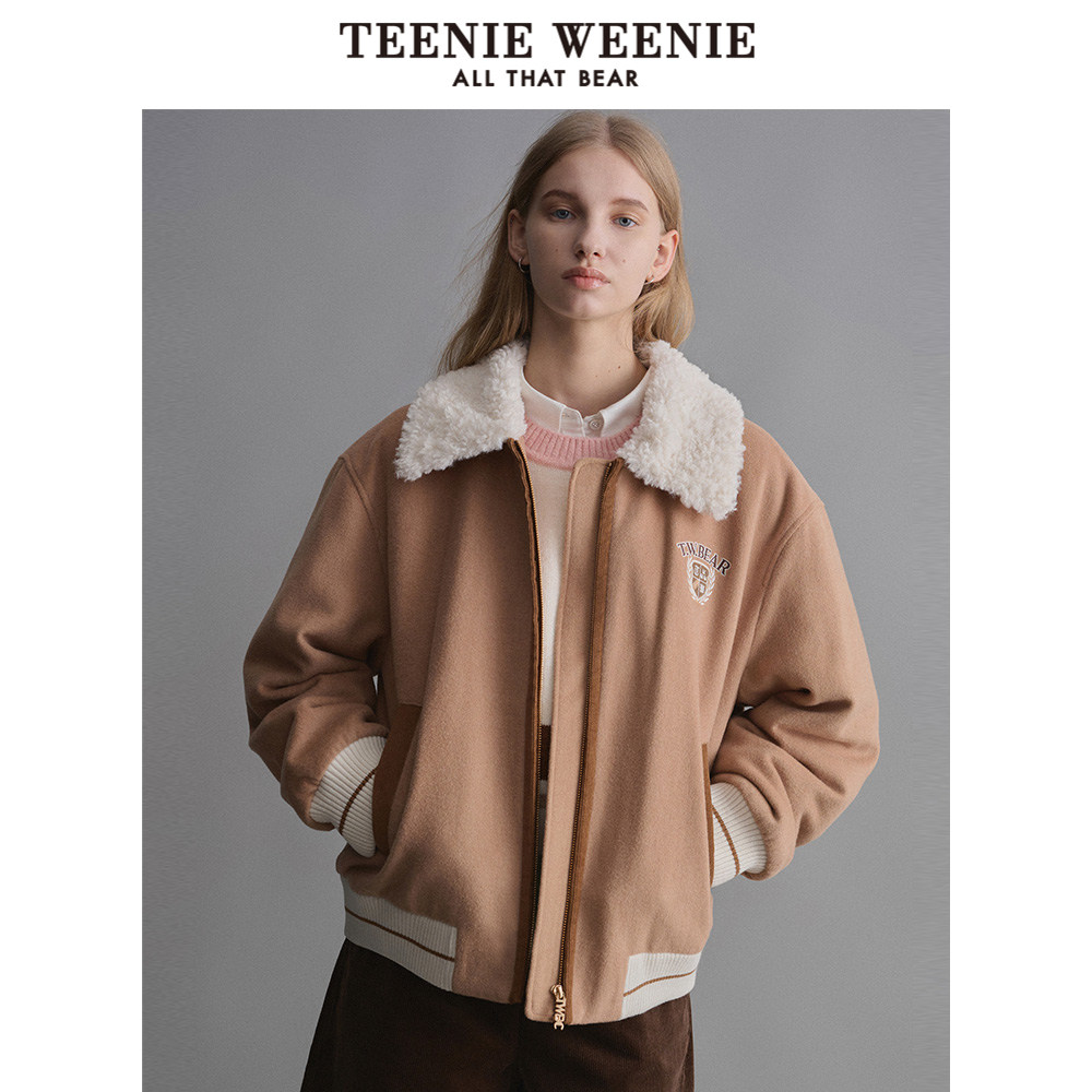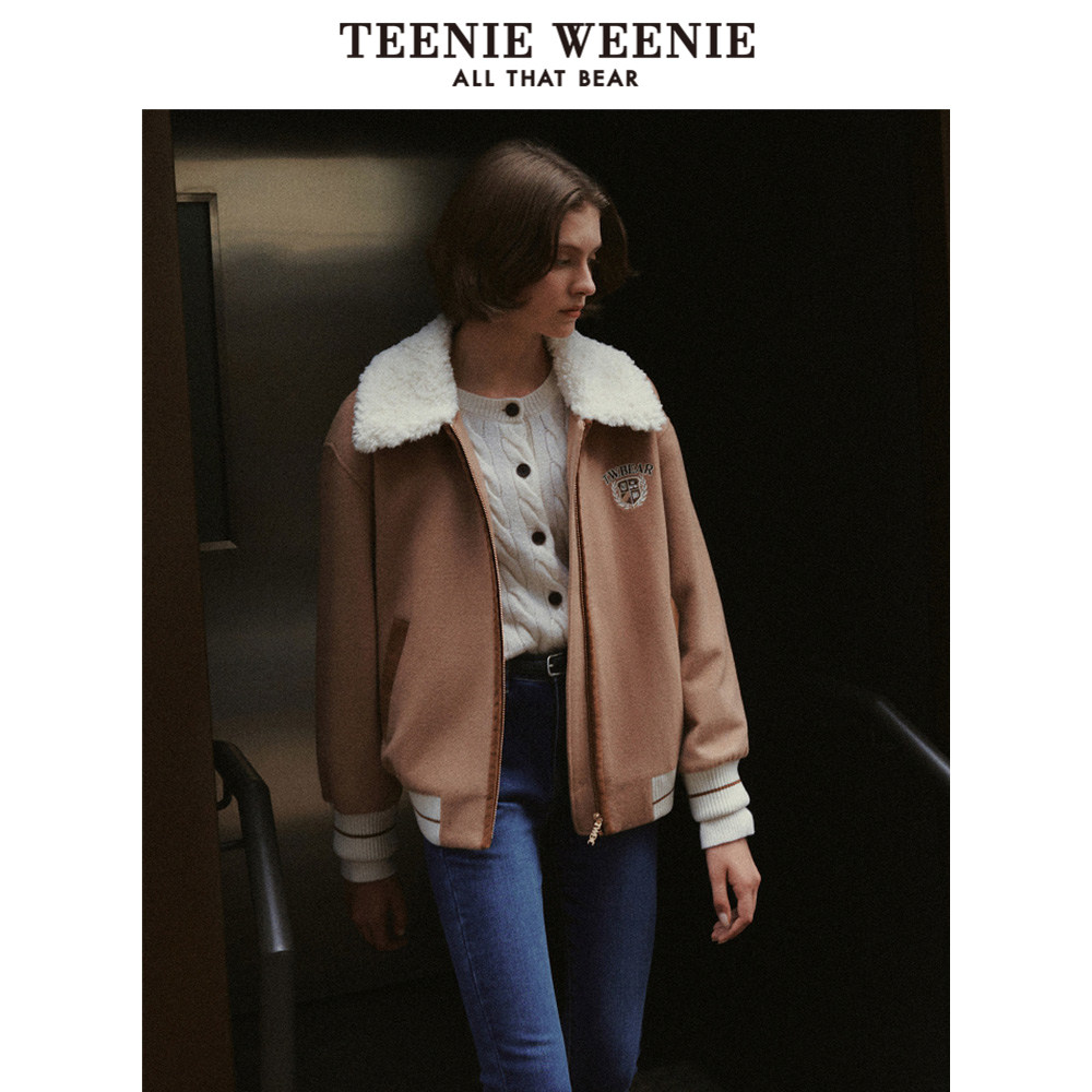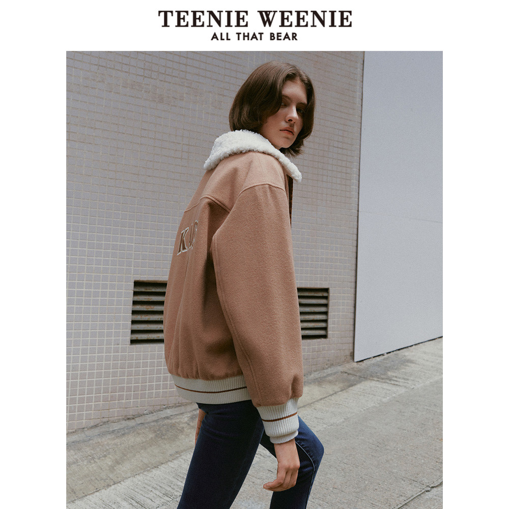 TeenieWeenie小熊奥莱秋冬绵羊毛混纺机车风酷感毛呢大衣保暖外套