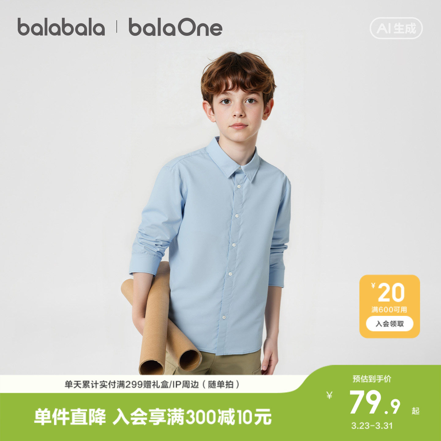 巴拉巴拉童装男童长袖衬衫宝宝2026新款春装纯棉亲肤纯色衬衣时尚