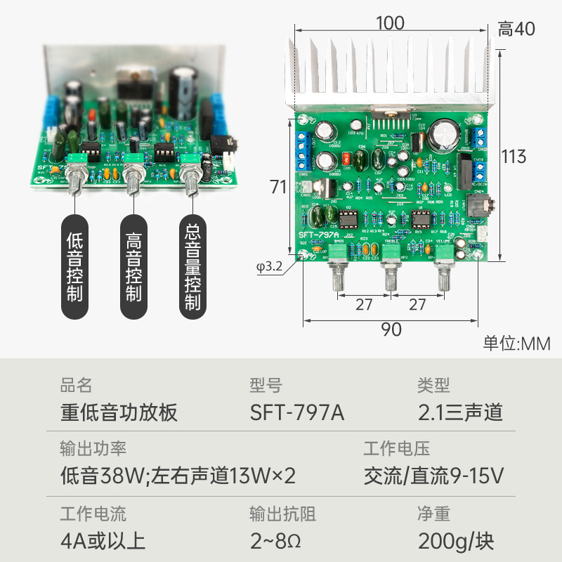 TDA7379重低音炮功放板2.1立体三声道64W单电源交直流12V车载功放