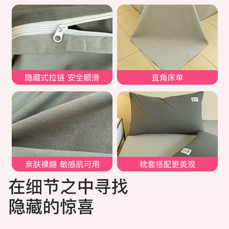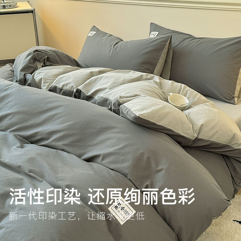A类水洗棉双层纱四件套被罩非全棉纯棉床单人学生宿舍被套三件套