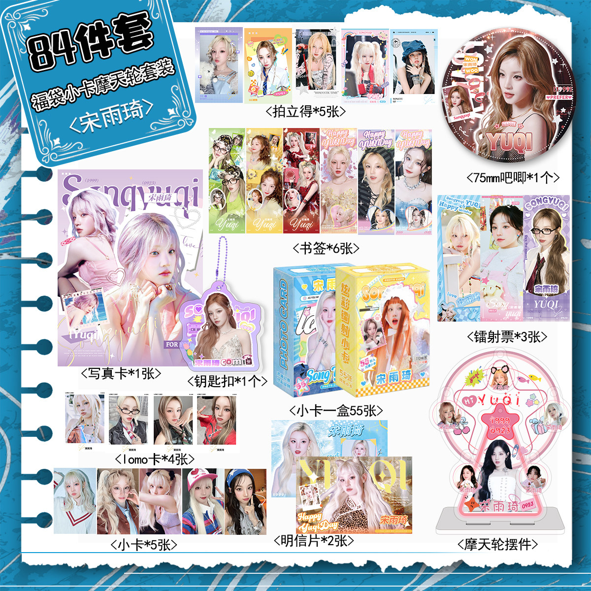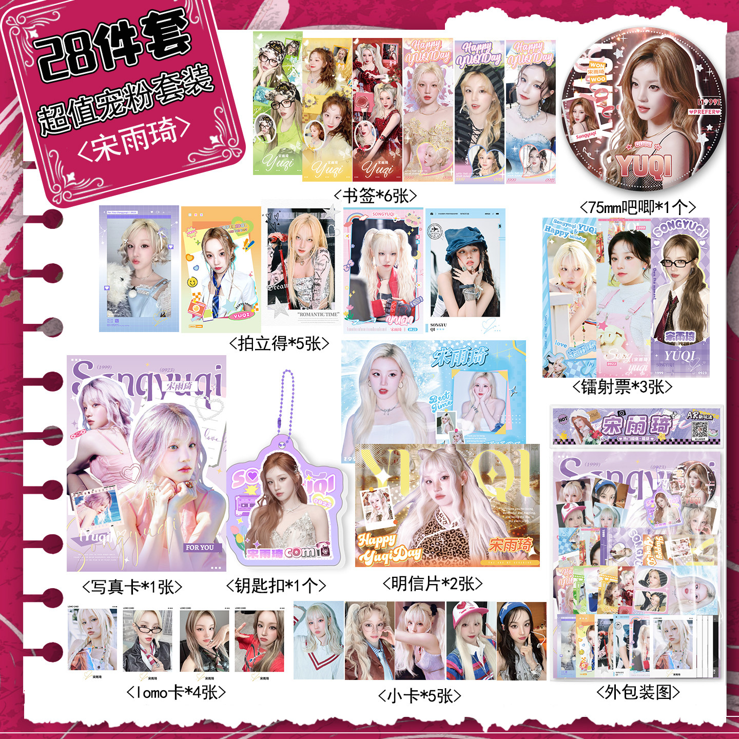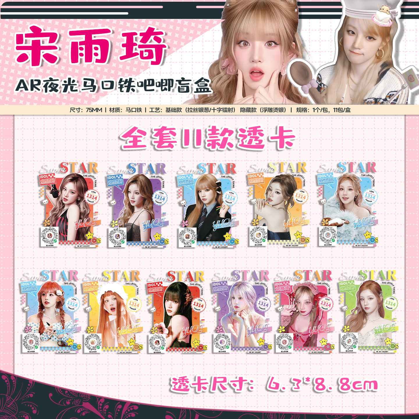 宋雨琦118件福袋小卡AR吧唧盲盒透卡海报镭射票色纸拍立得lomo