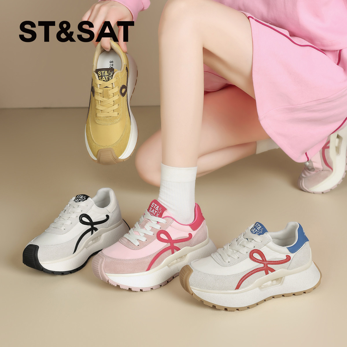 星期六厚底德训鞋女款2025新款小个子内增高休闲运动阿甘鞋子