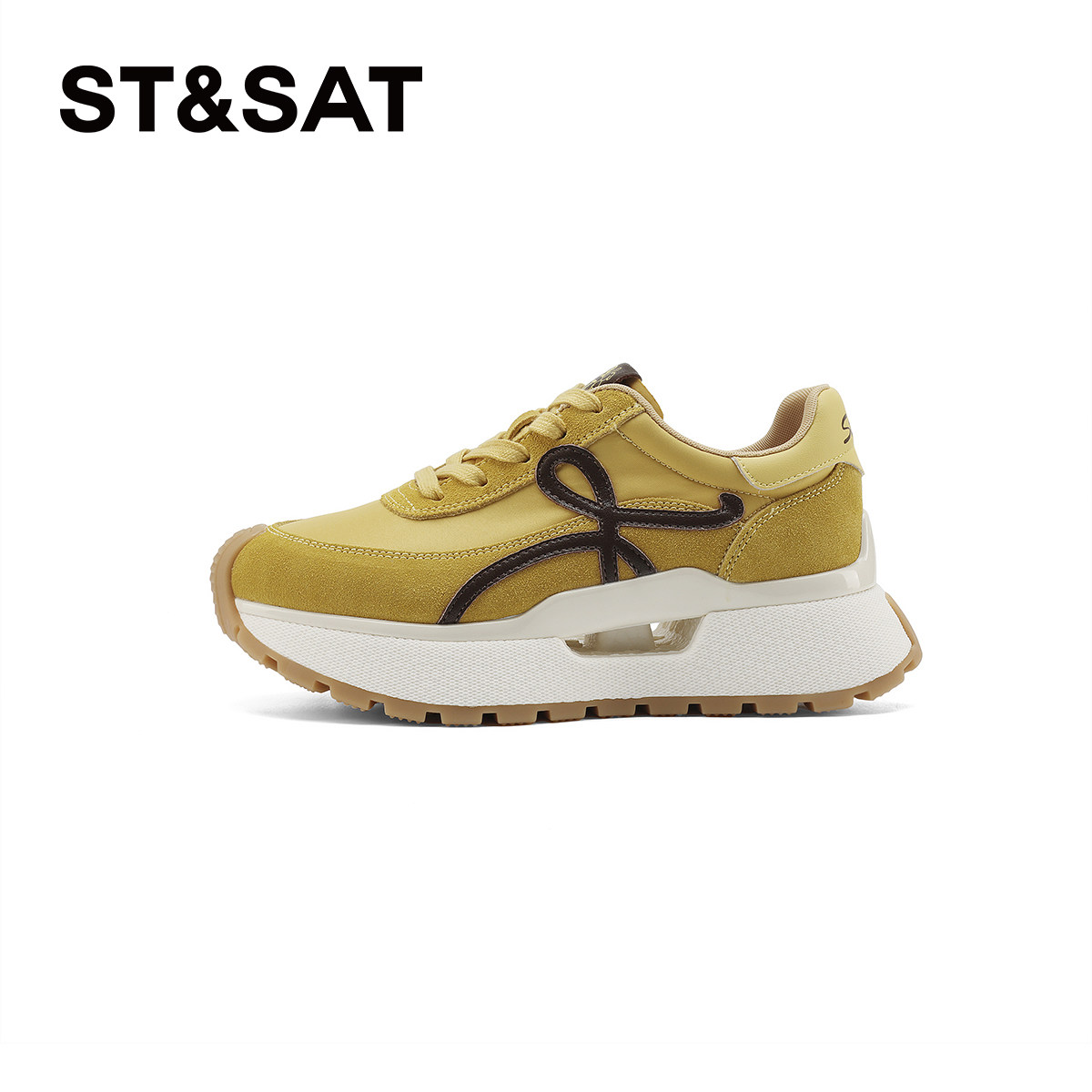 厚底德训鞋女款2026新款春季女鞋百搭黄色鞋子内增高运动鞋女板鞋