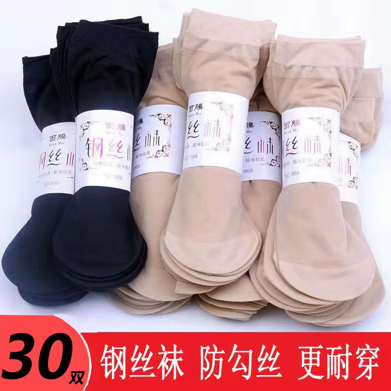 30双钢丝袜女春夏天季短丝袜防勾丝短筒薄款肉色天鹅绒袜中筒水晶