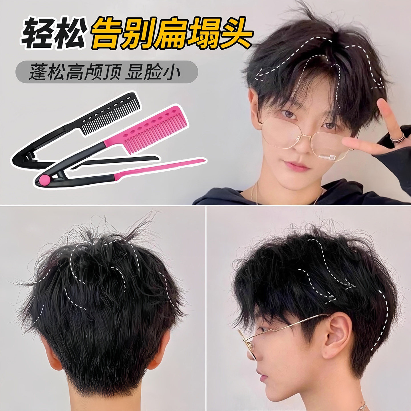 蓬松高颅顶神器发根蓬松梳V型梳子发夹男士专用 造型发梳美发工具