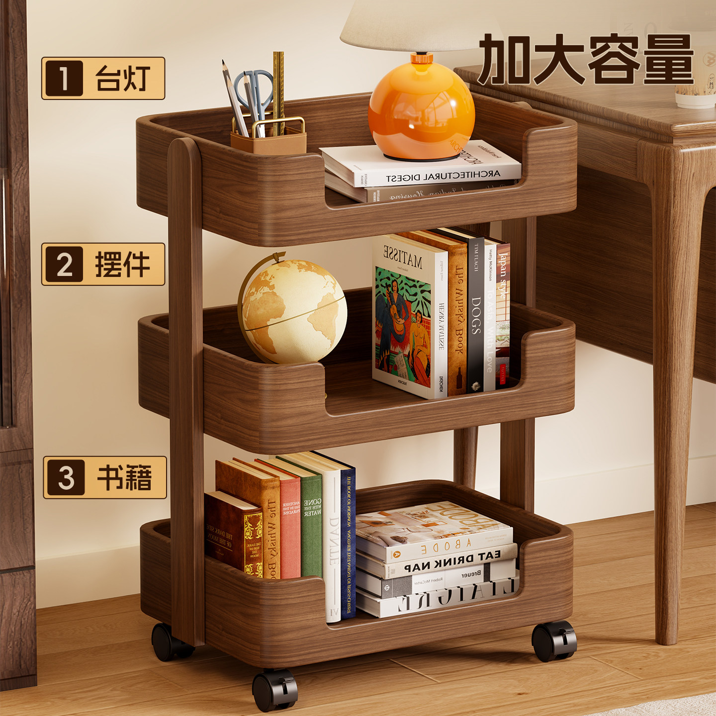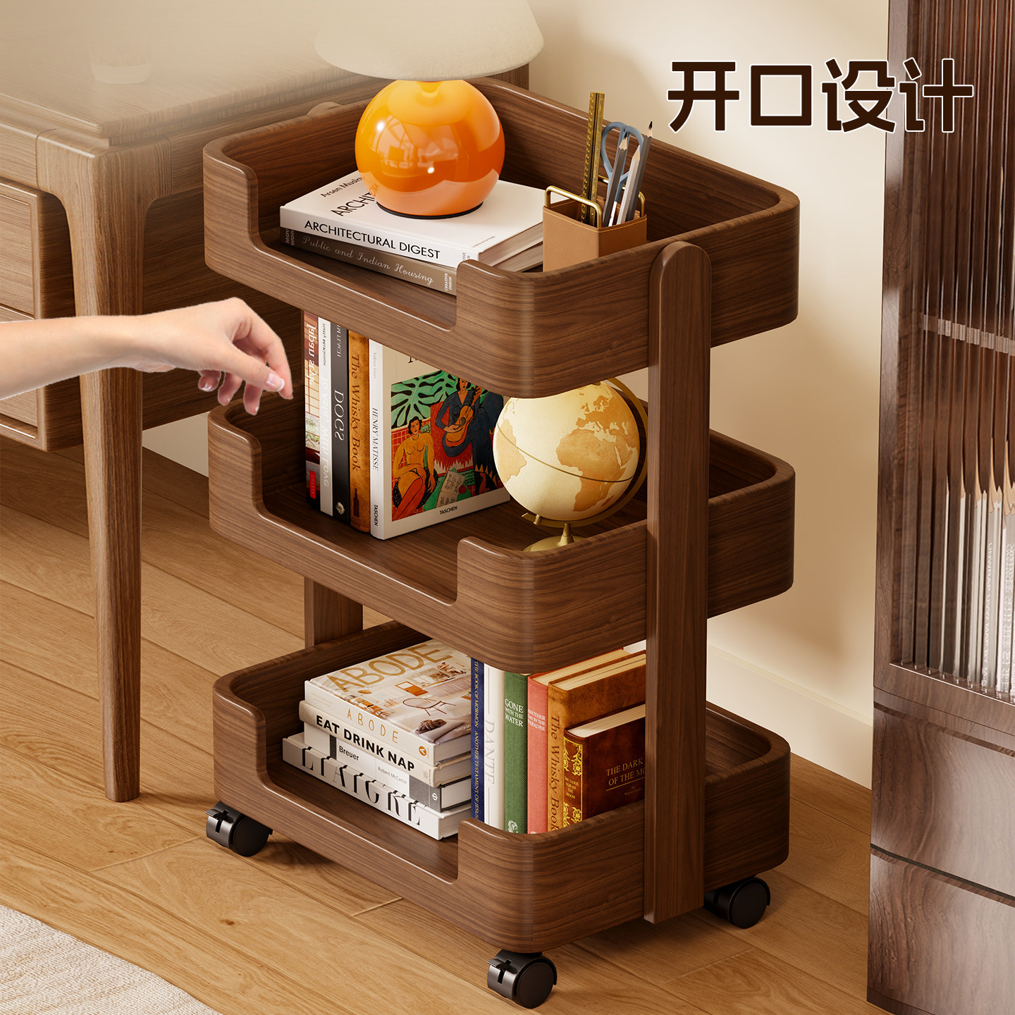 实木书架落地书房置物架多层收纳可移动客厅书柜轻奢卧室沙发边几