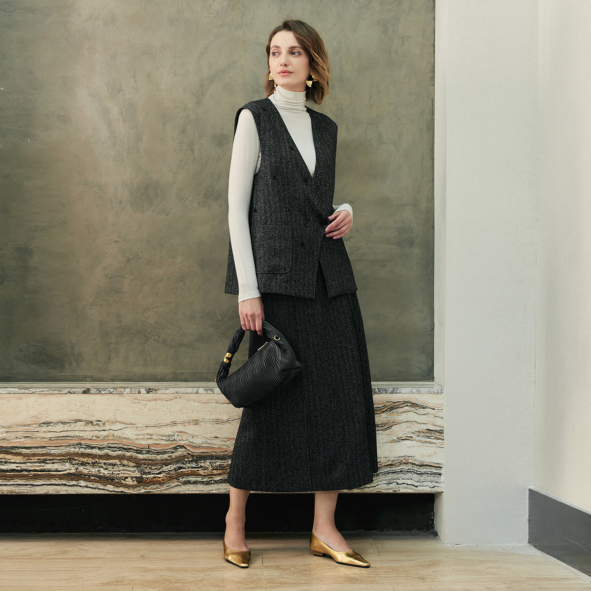 【所有女生的衣橱直播间】达佳诗短款毛呢外套/半身裙套装