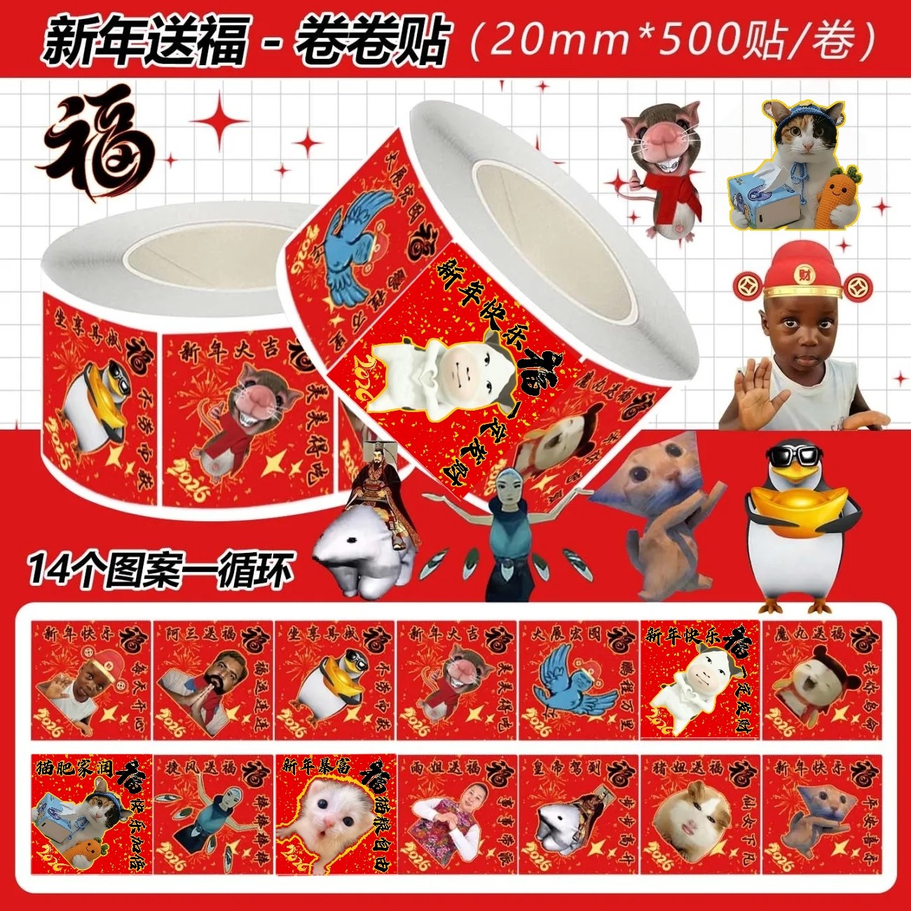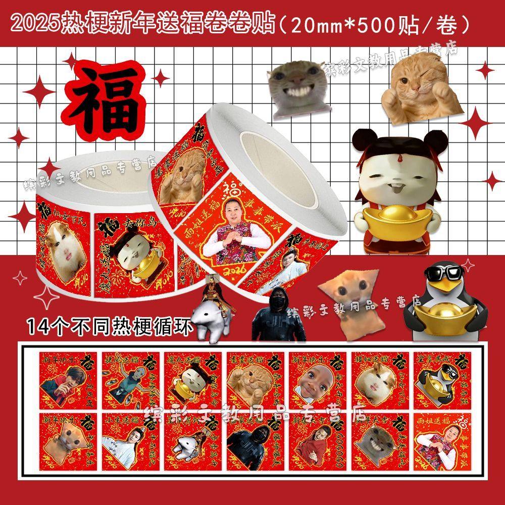 2000贴爆款热梗福字抽象表情包卷卷贴不干胶新年搞笑氛围装饰贴画
