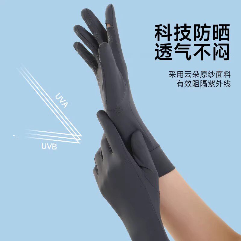 防晒手套女防紫外线冰丝露二指夏季户外电动车骑行开车手套女薄款