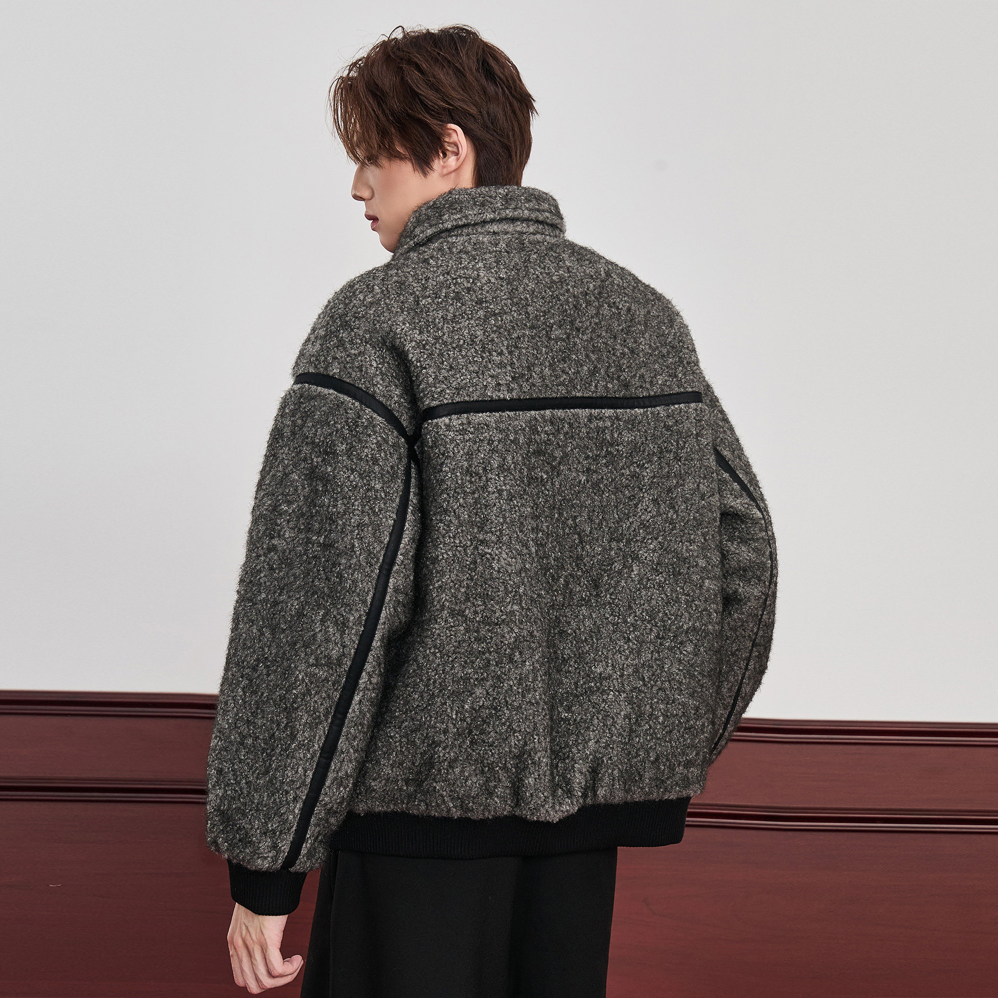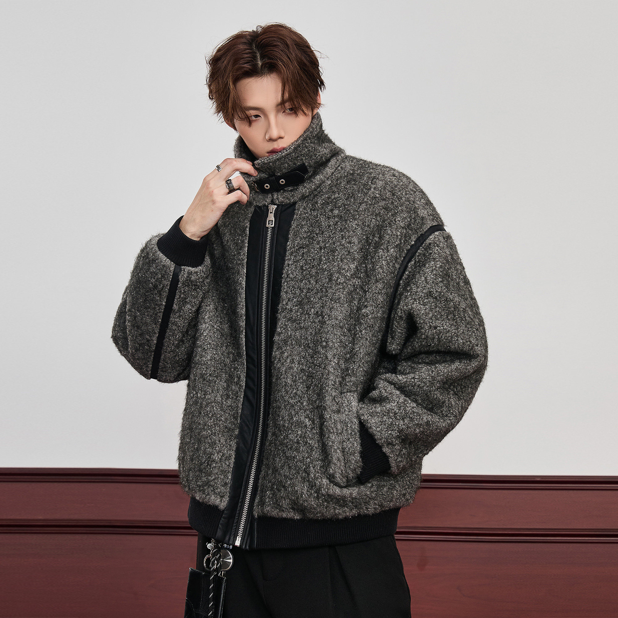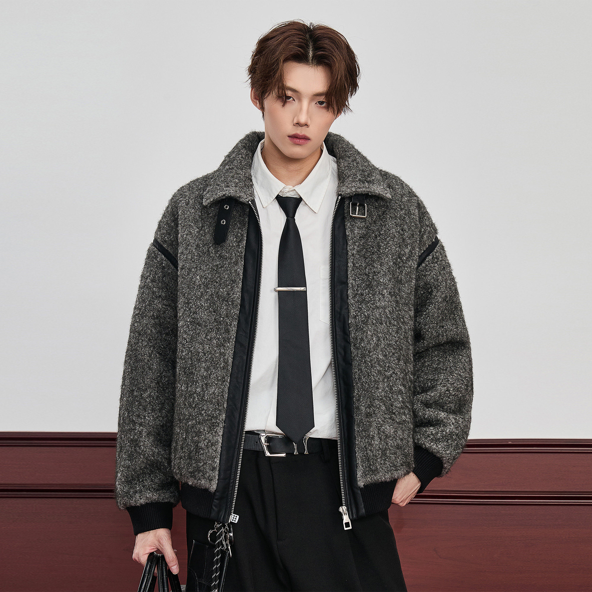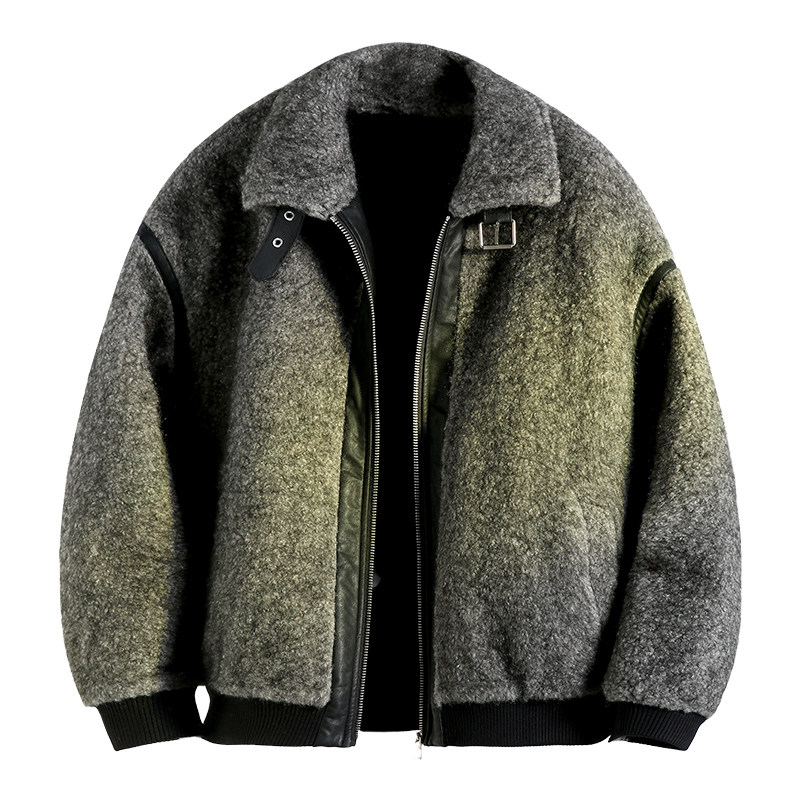 ALLIN 皮毛一体拼接cleanfit翻领夹克男秋冬加厚中性廓形情侣外套