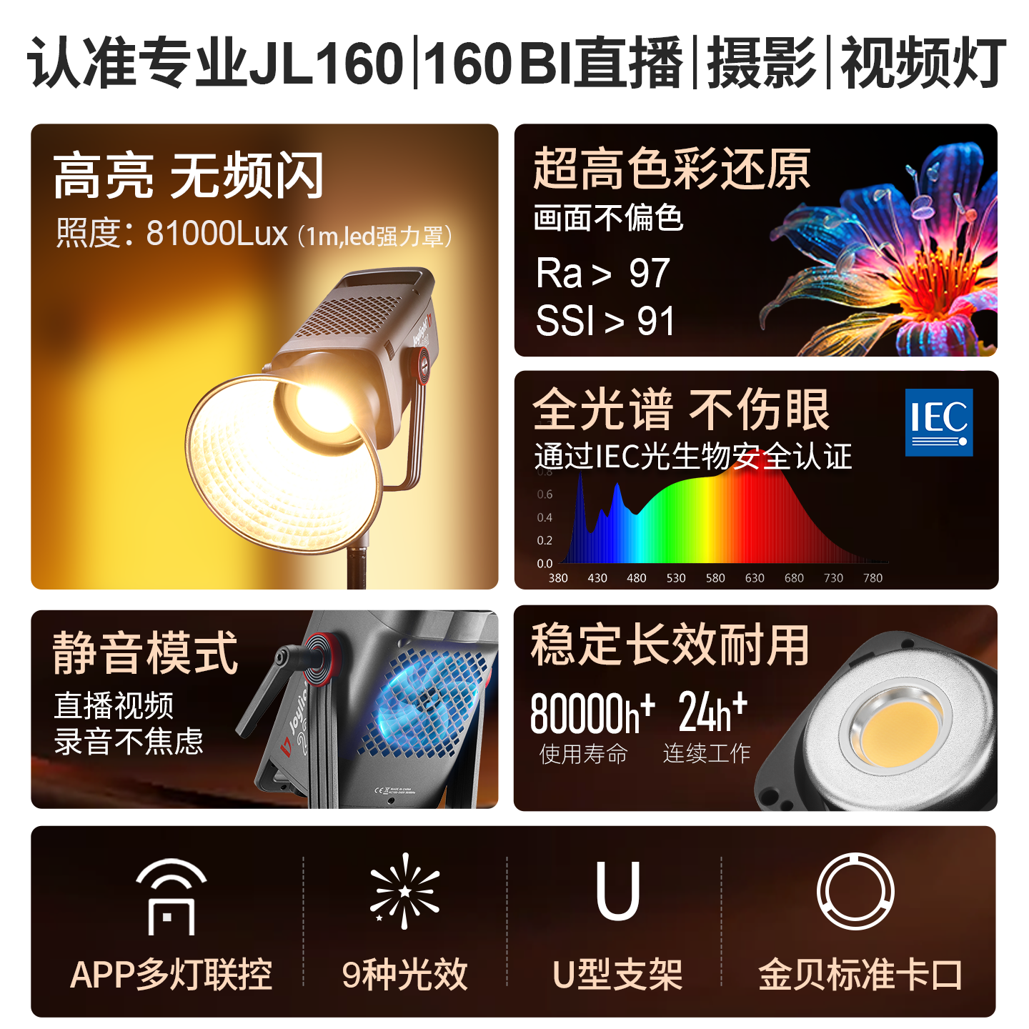 金贝EF150pro升级JL160摄影直播补光灯套装160W主播专用服装美妆珠宝绿幕直播间深抛常亮LED影视柔光灯发丝灯