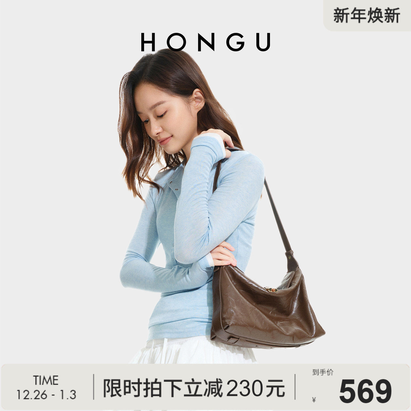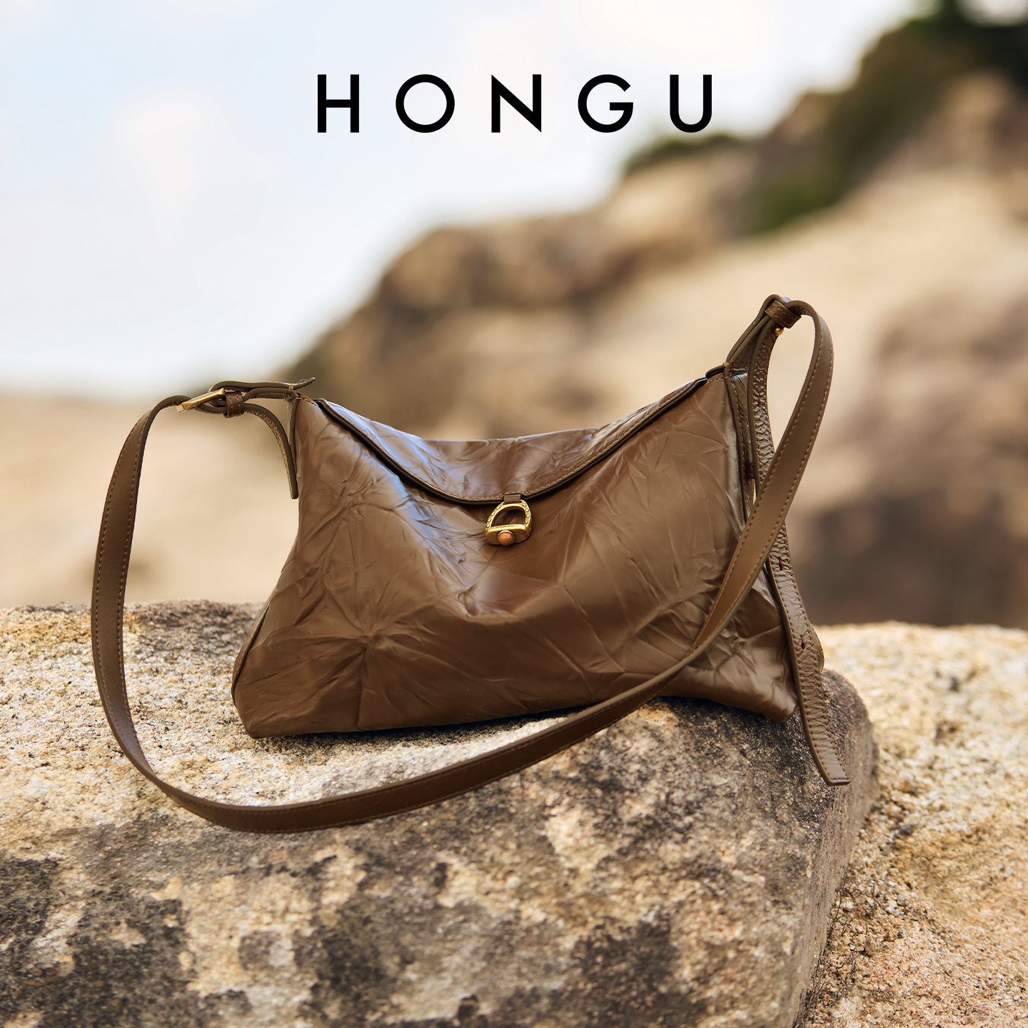 红谷包包女2025新款高级感真皮单肩腋下包通勤大容量hobo包女士包