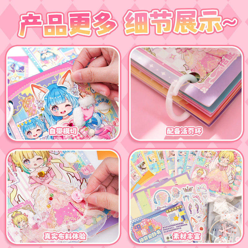 AKi酱织梦星语换装安静书小女孩蕾丝花边服装配饰DIY材料包贴纸本