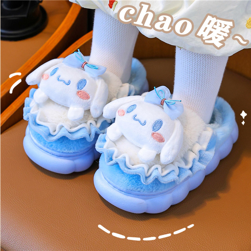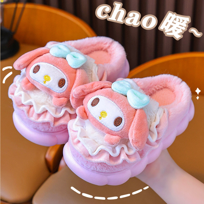 2025新款儿童可爱棉拖鞋冬季女童公主居家加厚保暖库洛米包跟棉鞋