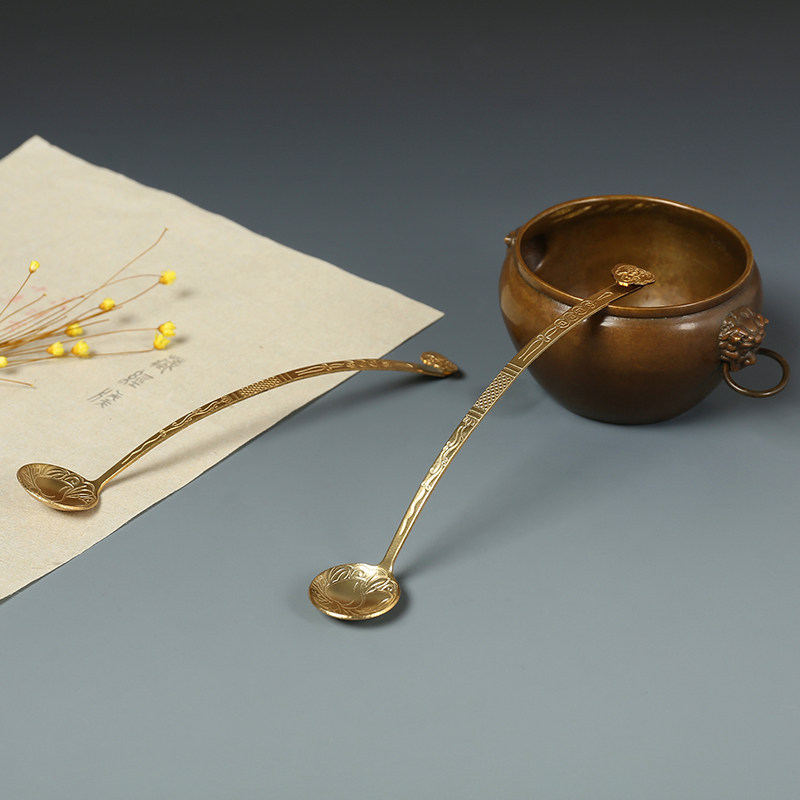 如意铜水勺 磨墨调色舀水用品文房器具