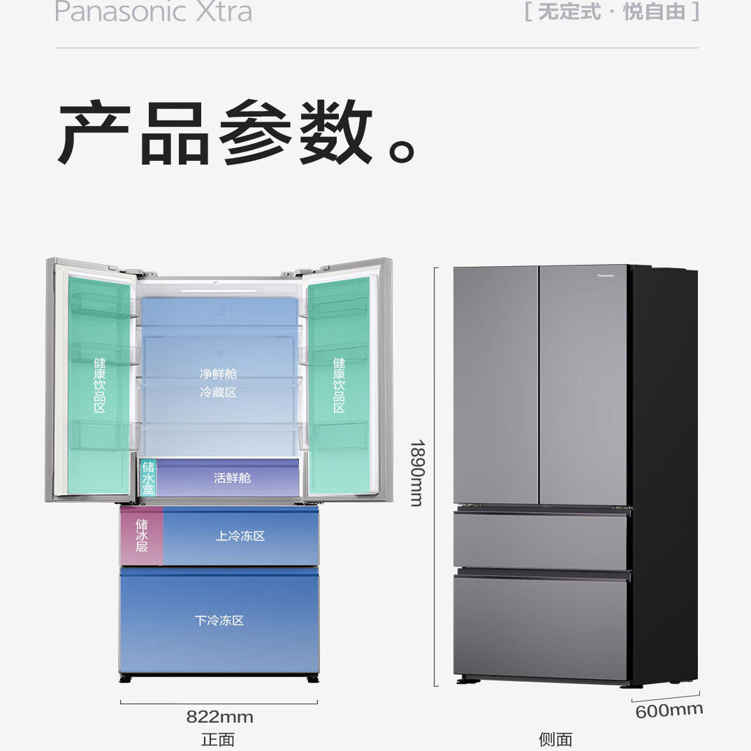 Panasonic/松下 NR-XG52GJB-S蔓越莓2.0法式多门515升零嵌入冰箱