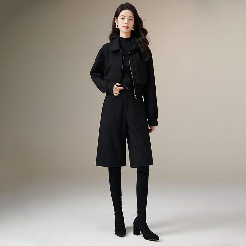 晚白2025年冬新款时尚纯色羊毛靴裤高腰显瘦百搭直筒阔腿裤女