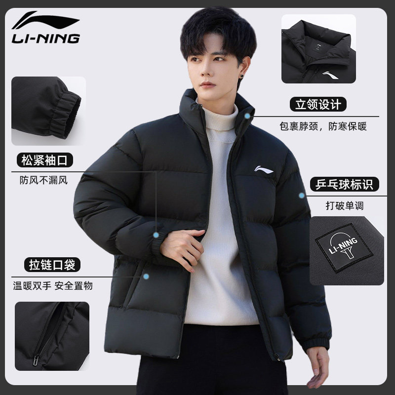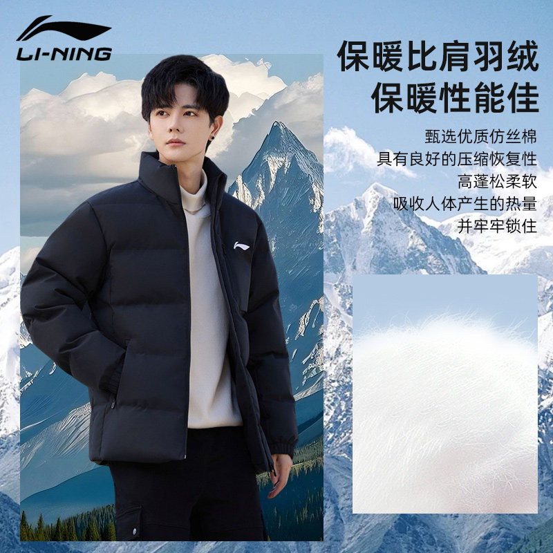 李宁棉服立领2025年新款加厚防风保暖男口袋设计休闲短款运动外套