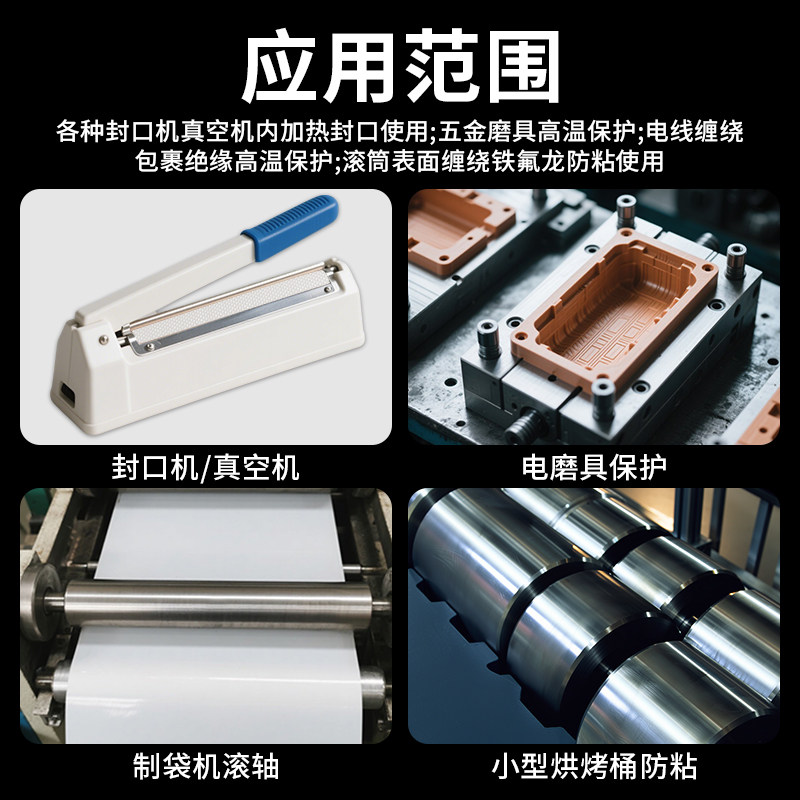 白色特氟龙耐高温胶带纤维贴纸纯薄膜垫片板光滑耐磨加厚绝缘小管芯工业封口机防粘隔热铁氟龙防烫胶布
