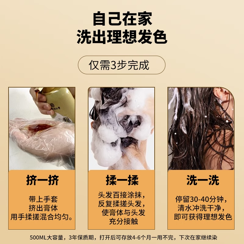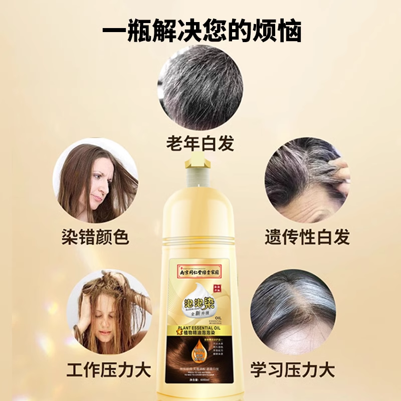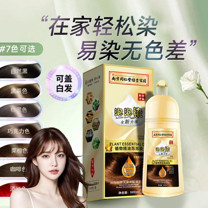 彩运来南京同仁堂染发剂泡泡染纯植物一洗黑无刺激黑茶色染发膏