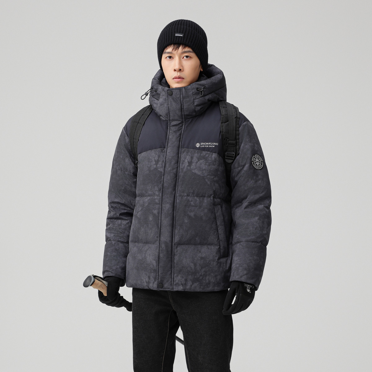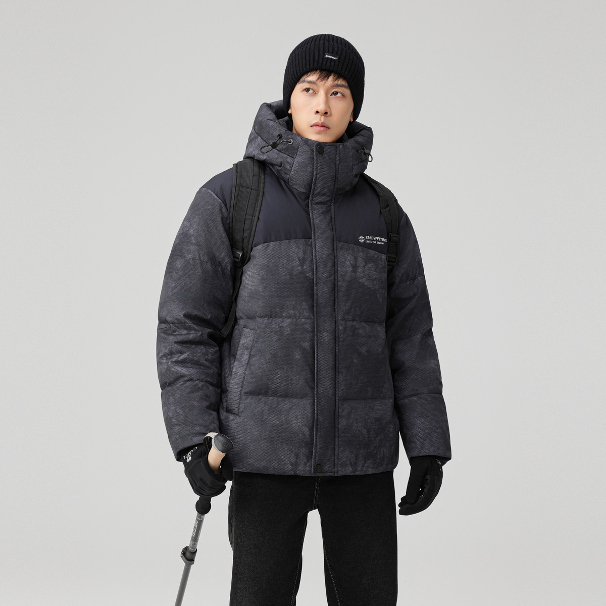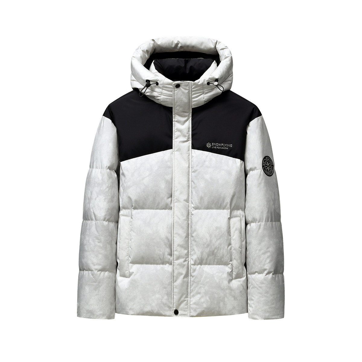 雪中飞2025冬新款连帽羽绒服男士立领撞色暗花户外时尚运动保暖