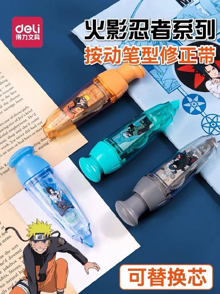 得力修正带火影忍者自动按动式可换替芯便携小型迷你卡通高颜值小学生批发初中生儿童文具6米超好用的男生款