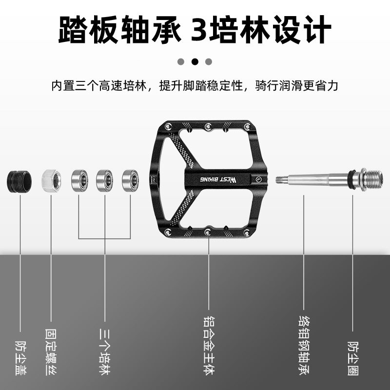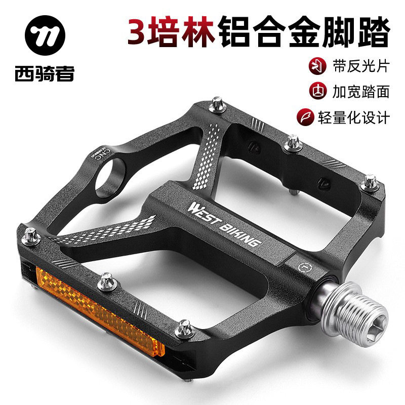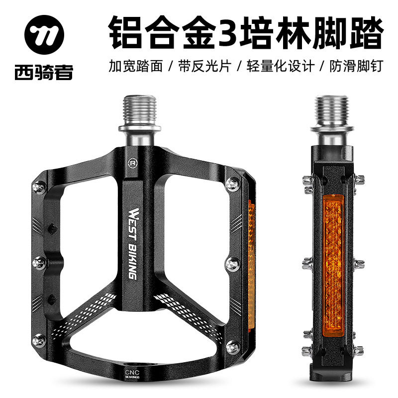 西骑者自行车脚踏 骑行带反光片脚踏三培林山地车公路车脚踏装备