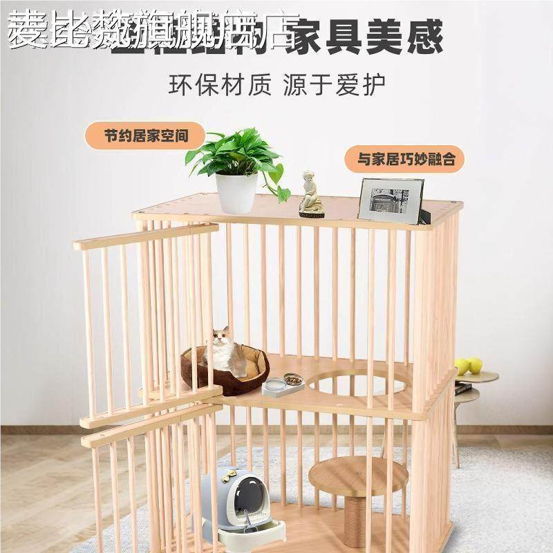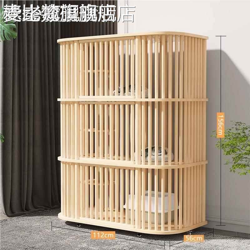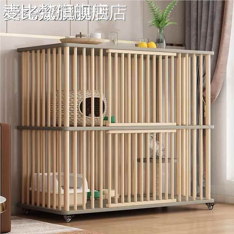 麦比梵实木猫笼子猫别墅家用双层大空间室内猫笼猫房子可移动猫 窝猫 柜 子摆件饰品床笠拉车