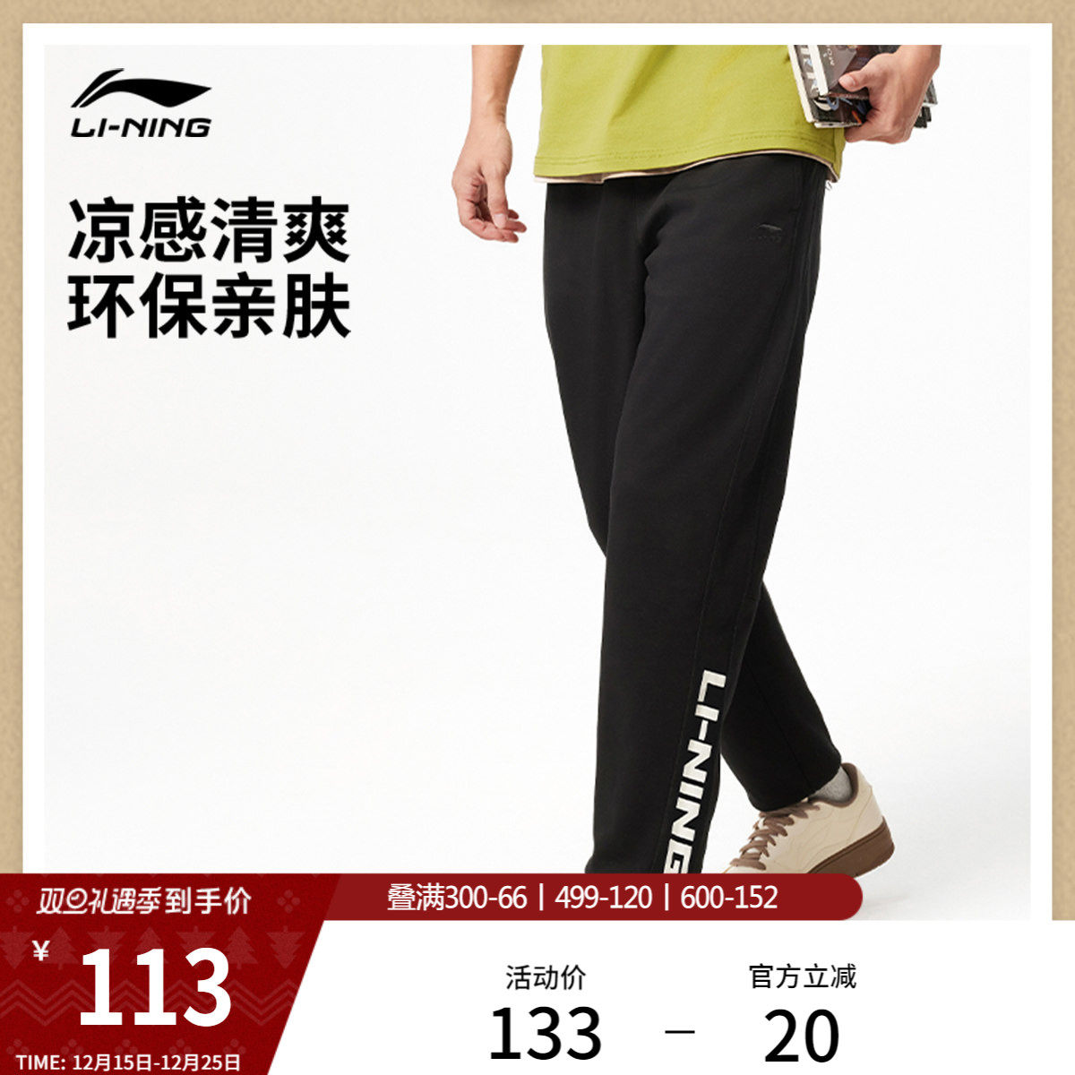 李宁卫裤男女秋裤子黑色运动裤子男士休闲裤透气针织运动速干裤