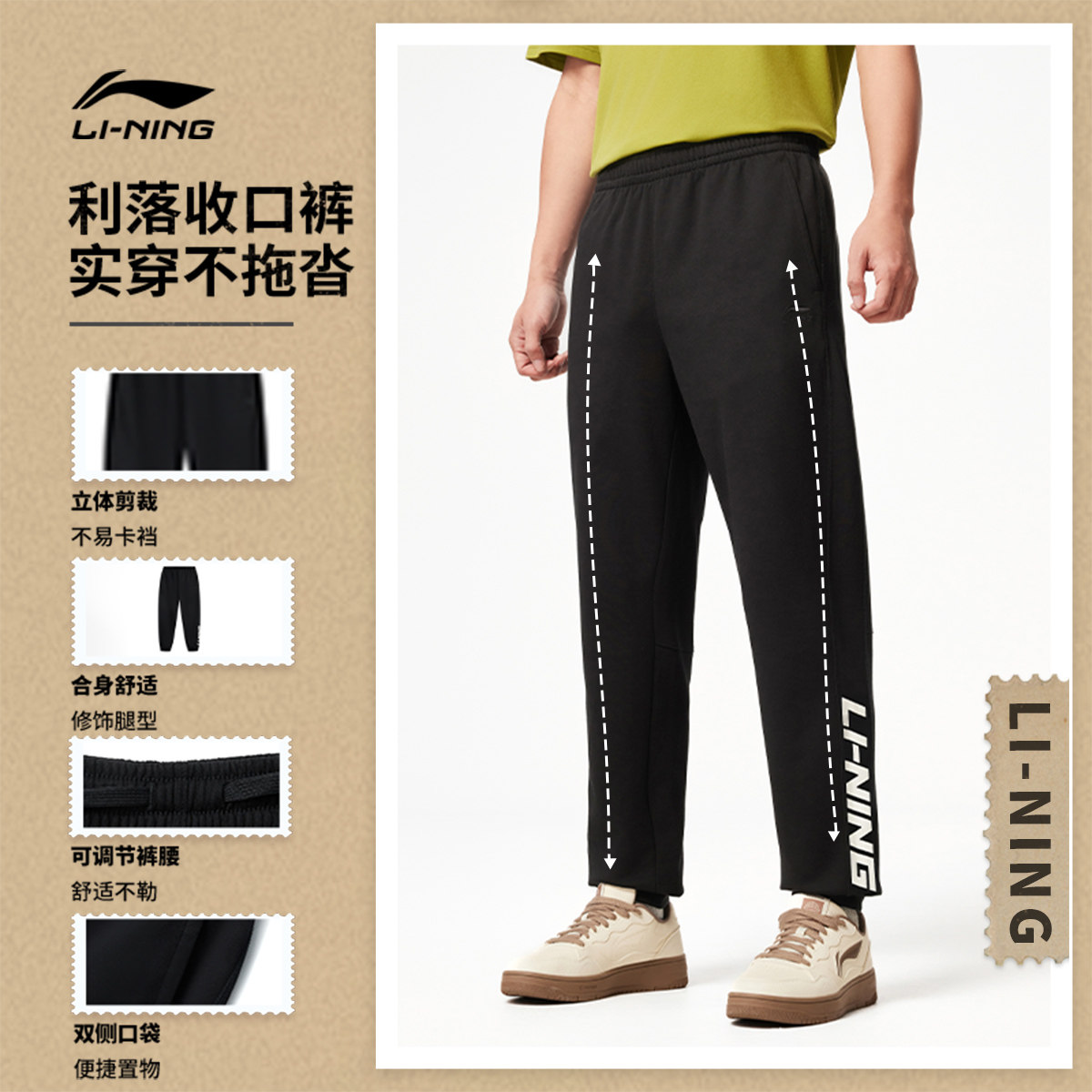 李宁运动裤男士健身跑步裤校服裤子针织卫裤休闲加绒运动长裤男款