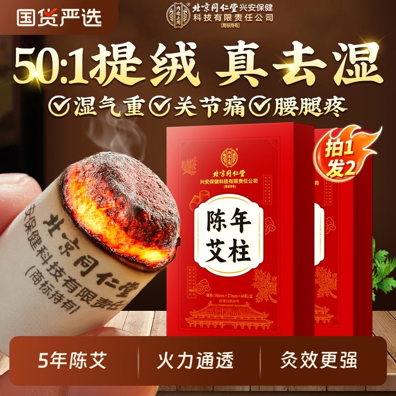 北京同仁堂艾柱短艾灸条非无烟家用随身灸官方旗舰店三年陈艾草