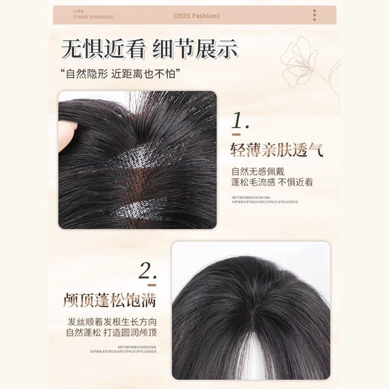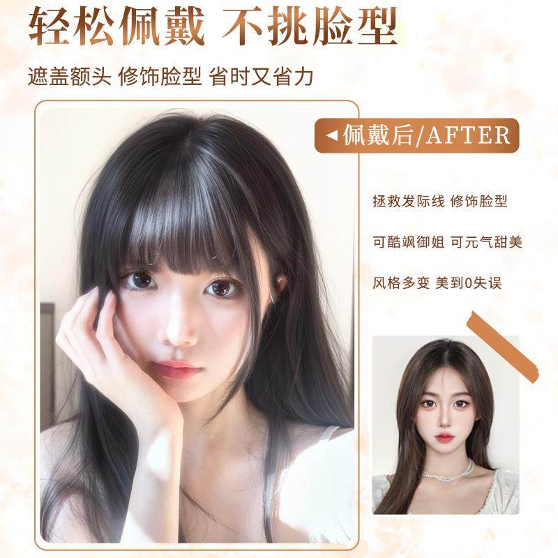 漫画刘海假发女片头顶补发全真发高颅顶自然齐刘海假刘海八字胎毛