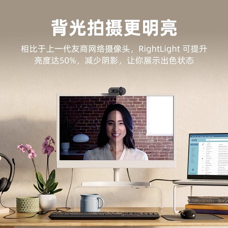罗技Brio 90全高清摄像头1080P网课会议家用直播摄像头带隐私盖