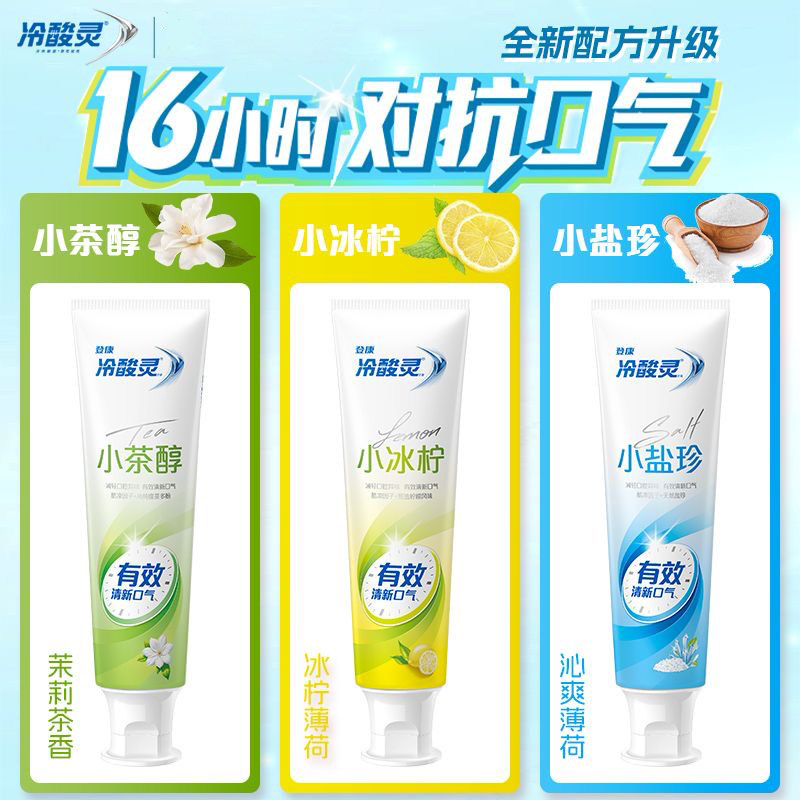 冷酸灵小茶醇牙膏亮白去渍祛黄口臭口气清新冰柠抗敏感小系列牙膏