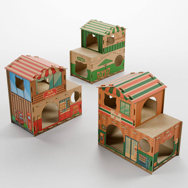 猫咪纸箱屋双层别墅猫窝猫抓板瓦楞纸商店半封闭新年超大室内