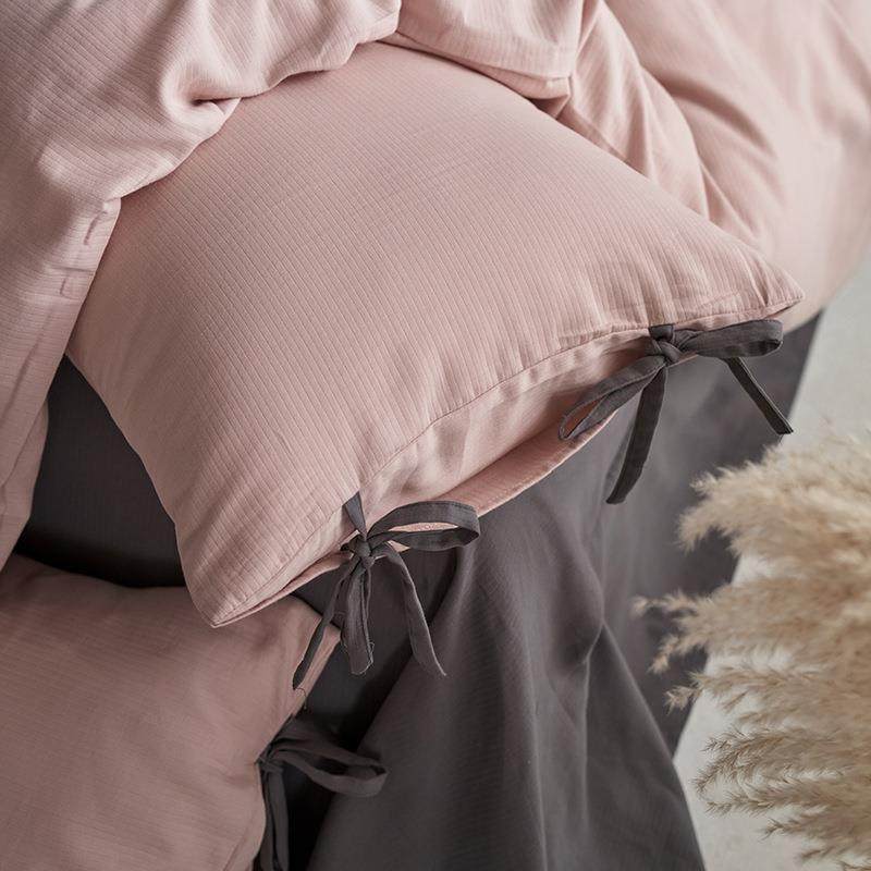 简约A类水洗磨毛床上四件套纯棉针织提花被罩床单绑带款床品3
