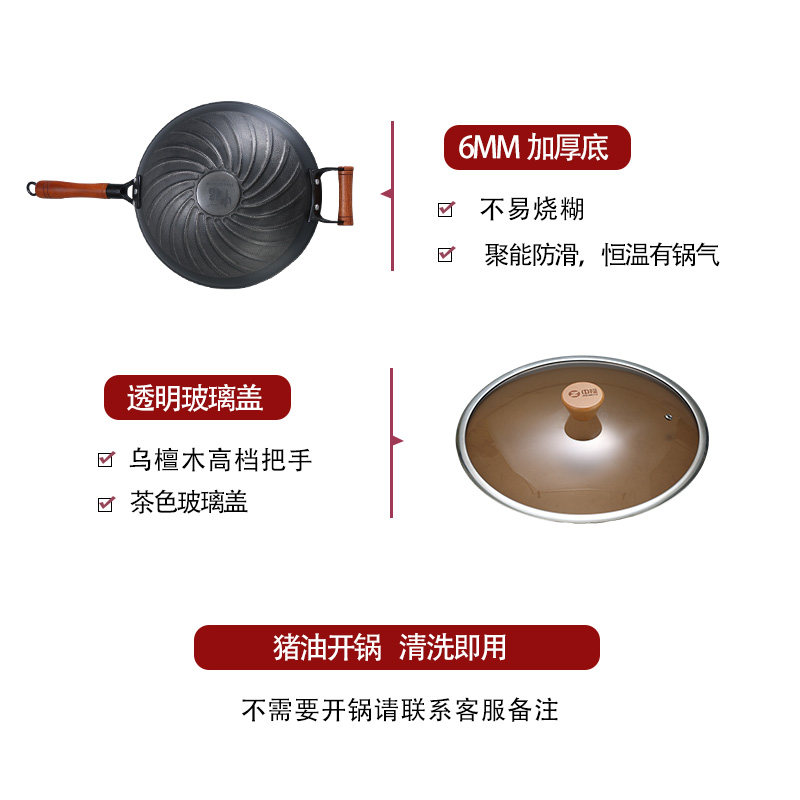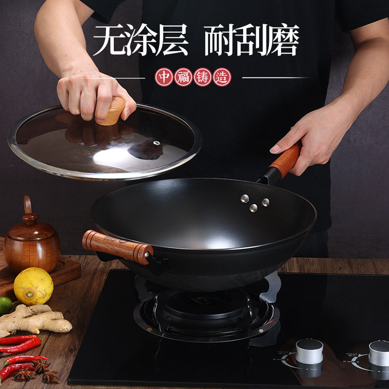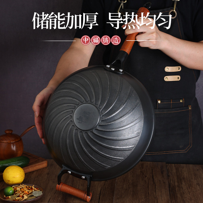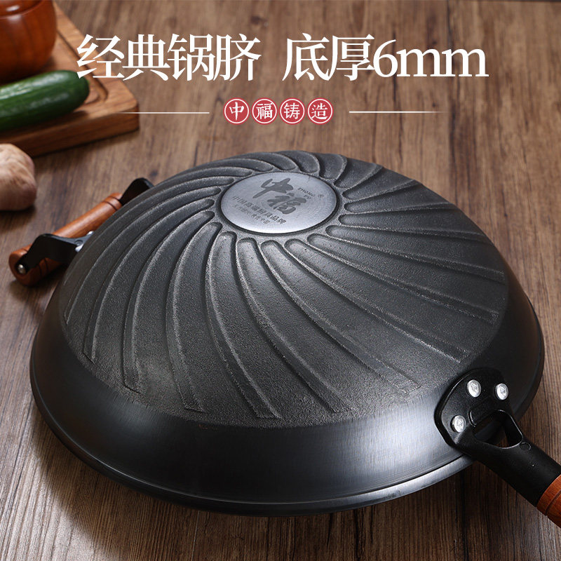 中福铸铁锅厚底薄壁旋风聚能炒菜锅无涂层生铁陆川铁锅官方旗舰店
