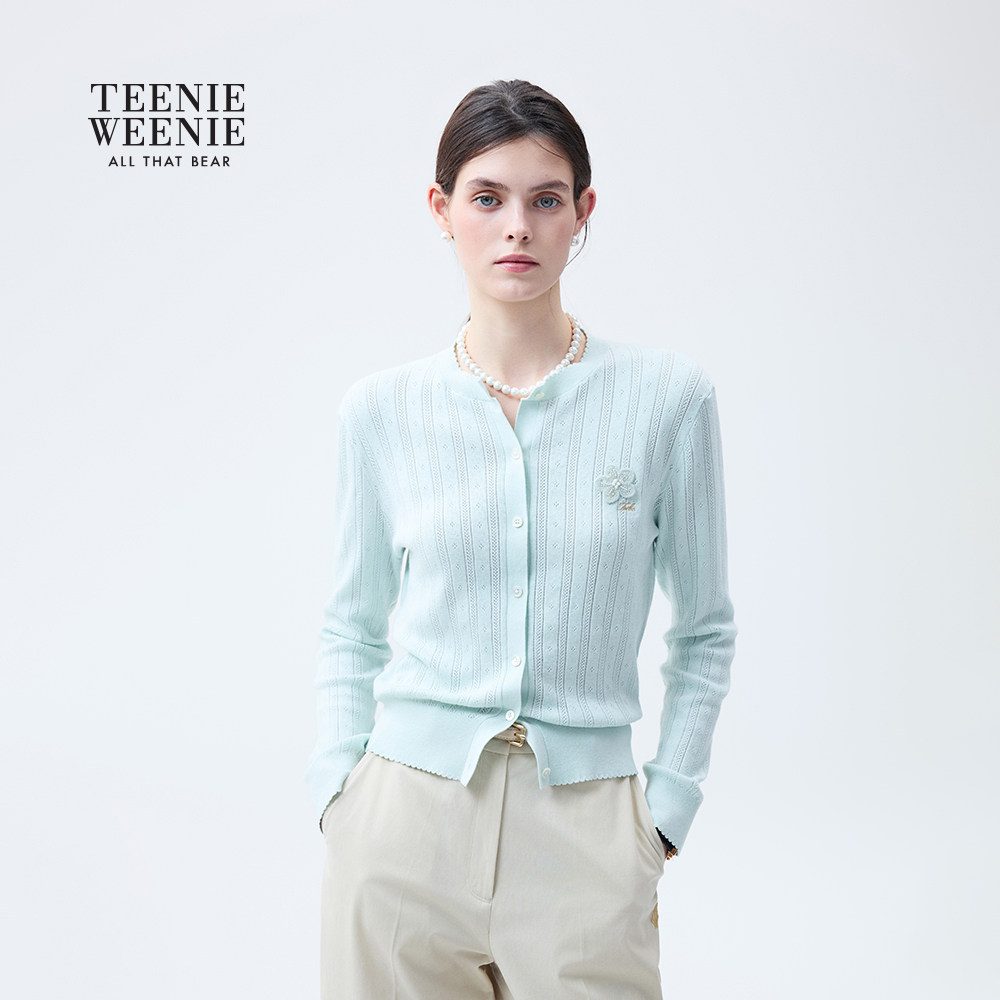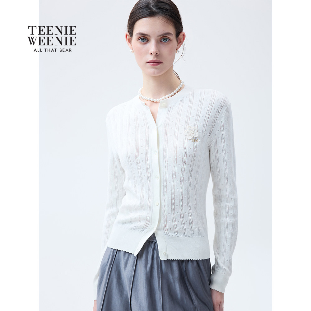 TeenieWeenie小熊女装26春季新品清新风甜美时尚花边圆领针织开衫